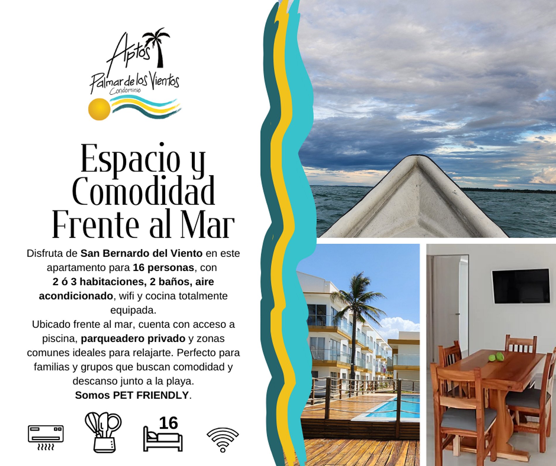 Beautiful and modern Condominium located on the beautiful and quiet beaches of San Bernardo del Viento - Cordoba, it is right in front of the sea, it has a pool with sea views, and most of the time with wide beaches to enjoy with family, friends, with your partner or why not alone.